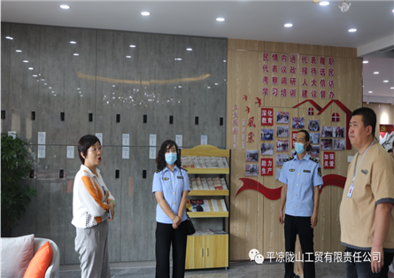 崆峒區人大常委會副主任、黨組副書記杜志民在平涼市崆峒區西郊街道黨工委書記賈元敏、平涼市崆峒區西郊街道黨工委委員、人大工委主任擺惠帶領下參觀平涼隴山工貿有限責任... [詳情]